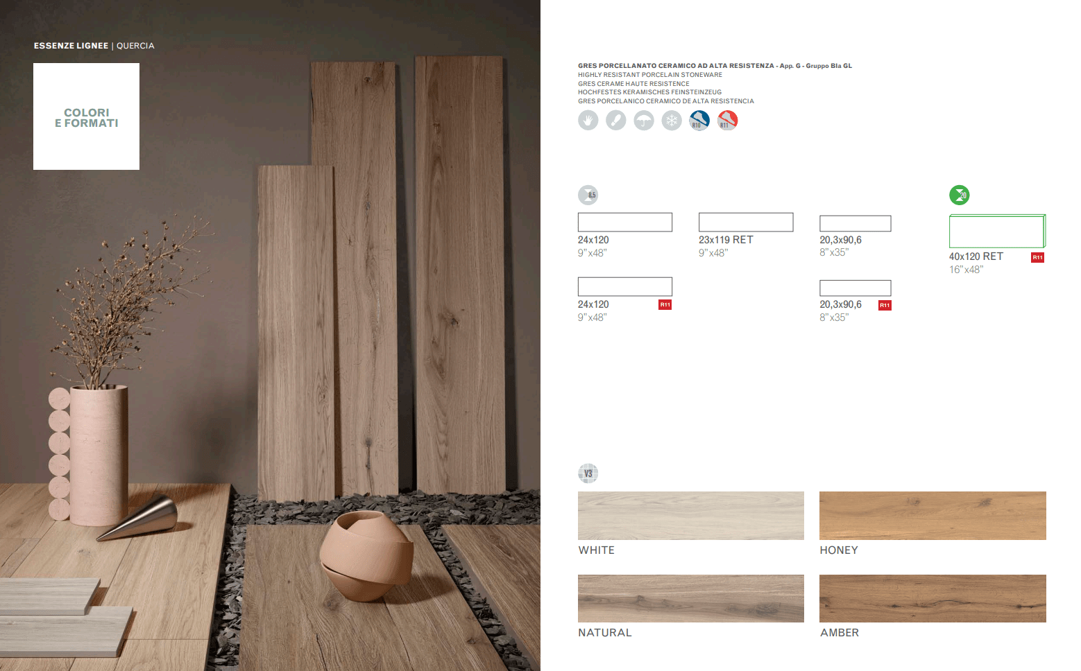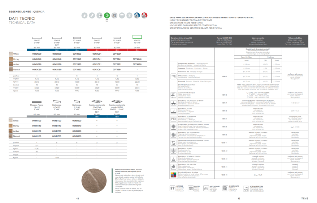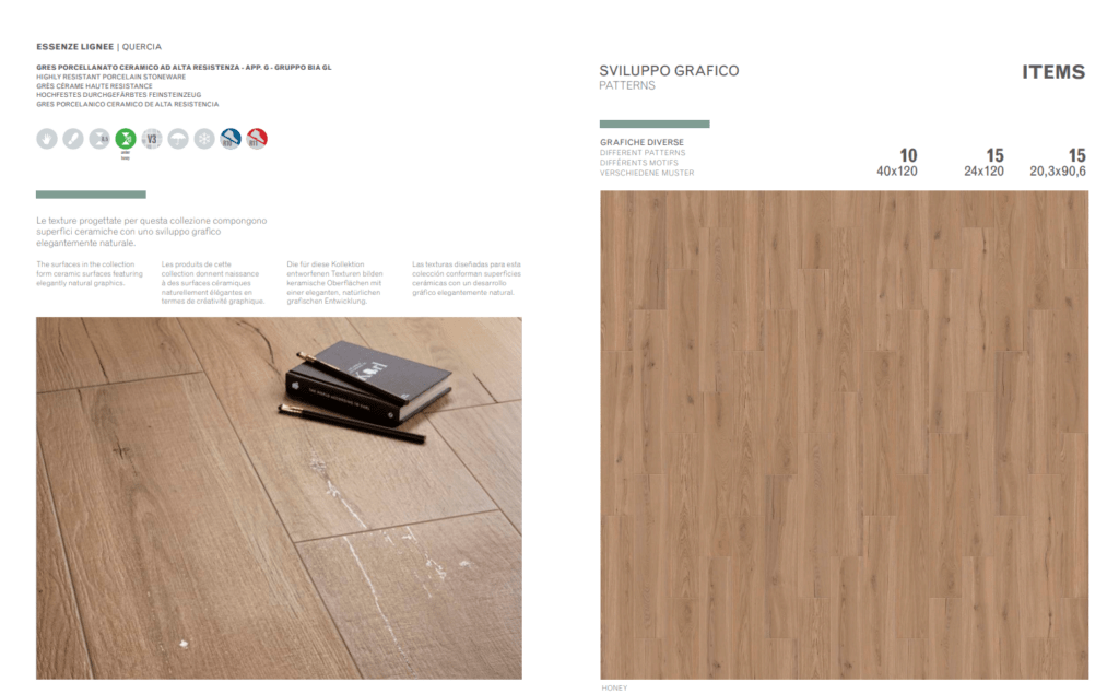 Quercia ricrea fibra per fibra l’essenza lignea più tenace e più riconoscibile. Utilizzato da sempre in architettura e nell’arredamento, il legno di quercia ispira una superficie in gres porcellanato dalla bellezza archetipica, fatta di texture bilanciate e di cromie naturali. Per interni e per esterni, in due formati e in due spessori, Quercia è il risultato di una tecnologia decorativa che parla ai nostri sensi attraverso una varietà di dettagli di grande realismo.